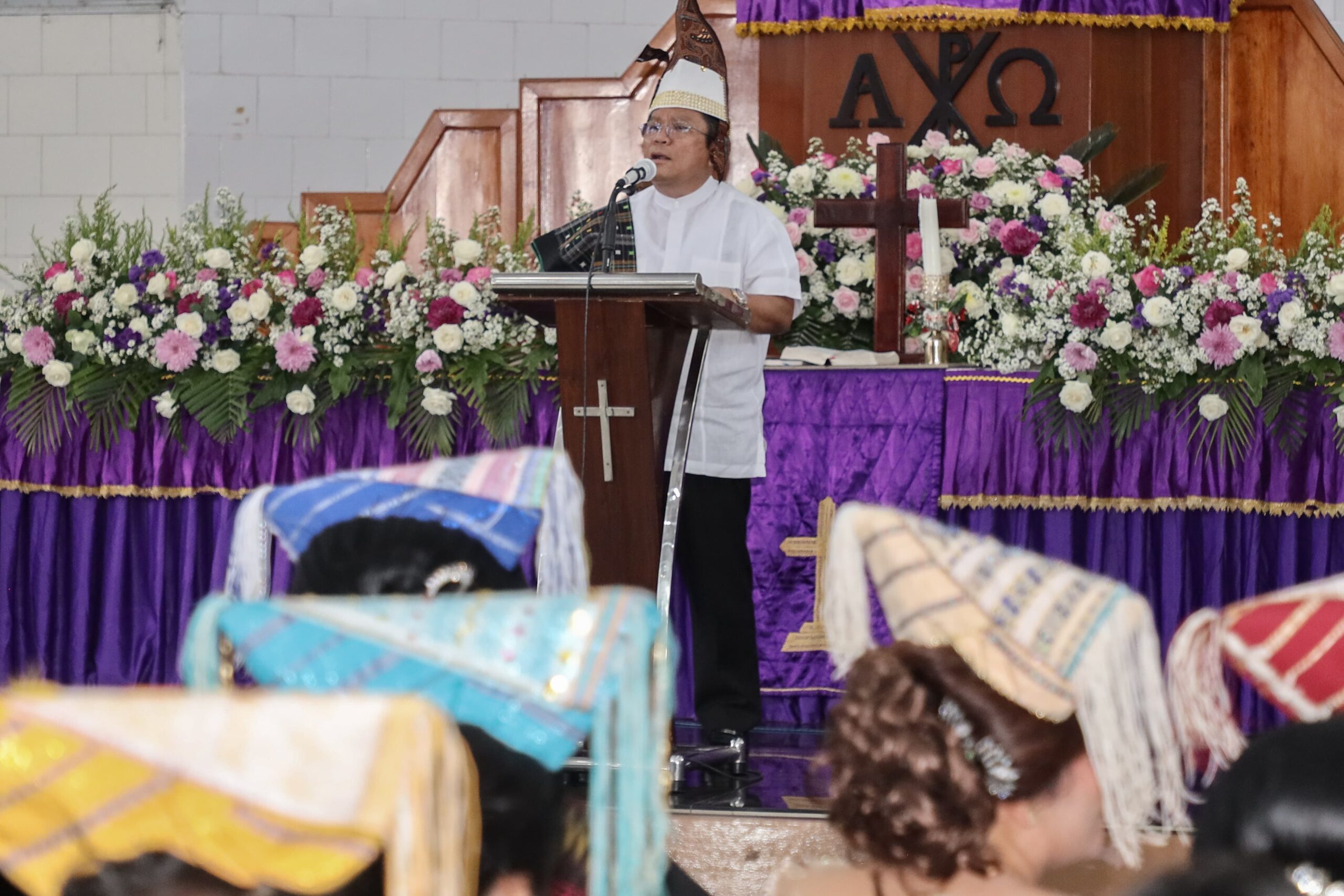 Akamsinews.com-Pematangsiantar. Wali Kota Pematangsiantar Wesly Silalahi SH MKn didampingi Ketua TP PKK Ny Liswati Wesly Silalahi menerima seperangkat pakaian adat Simalungun saat menghadiri Perayaan Syukuran Hari Ulang Tahun (HUT) ke-74 Gereja Kristen Protestan Simalungun (GKPS) Jalan Jenderal Sudirman Pematangsiantar, Minggu (13/04/2025). Sedangkan Kapolres Pematangsiantar AKBP Sah Udur Togi Marito Sitinjak SH SIK MH yang juga hadir, diberi Hiou Pamotting yang diikat di pinggang, bermakna agar kuat menjalankan tugas sebagai Kapolres.