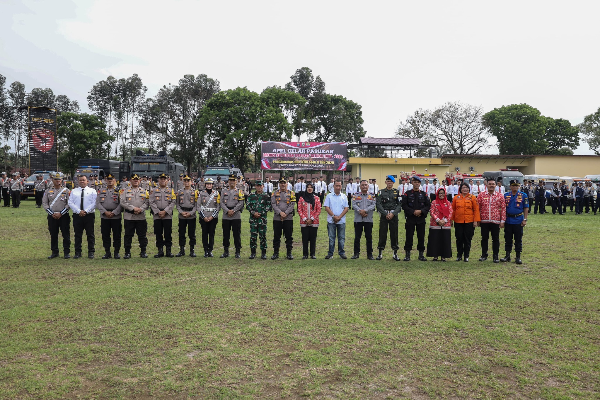 Apel diikuti barisan TNI, Brimob, Polri, Dishub, Satpol PP, BPBD, Damkar, Pramuka, PMR, dan kendaraan operasional.