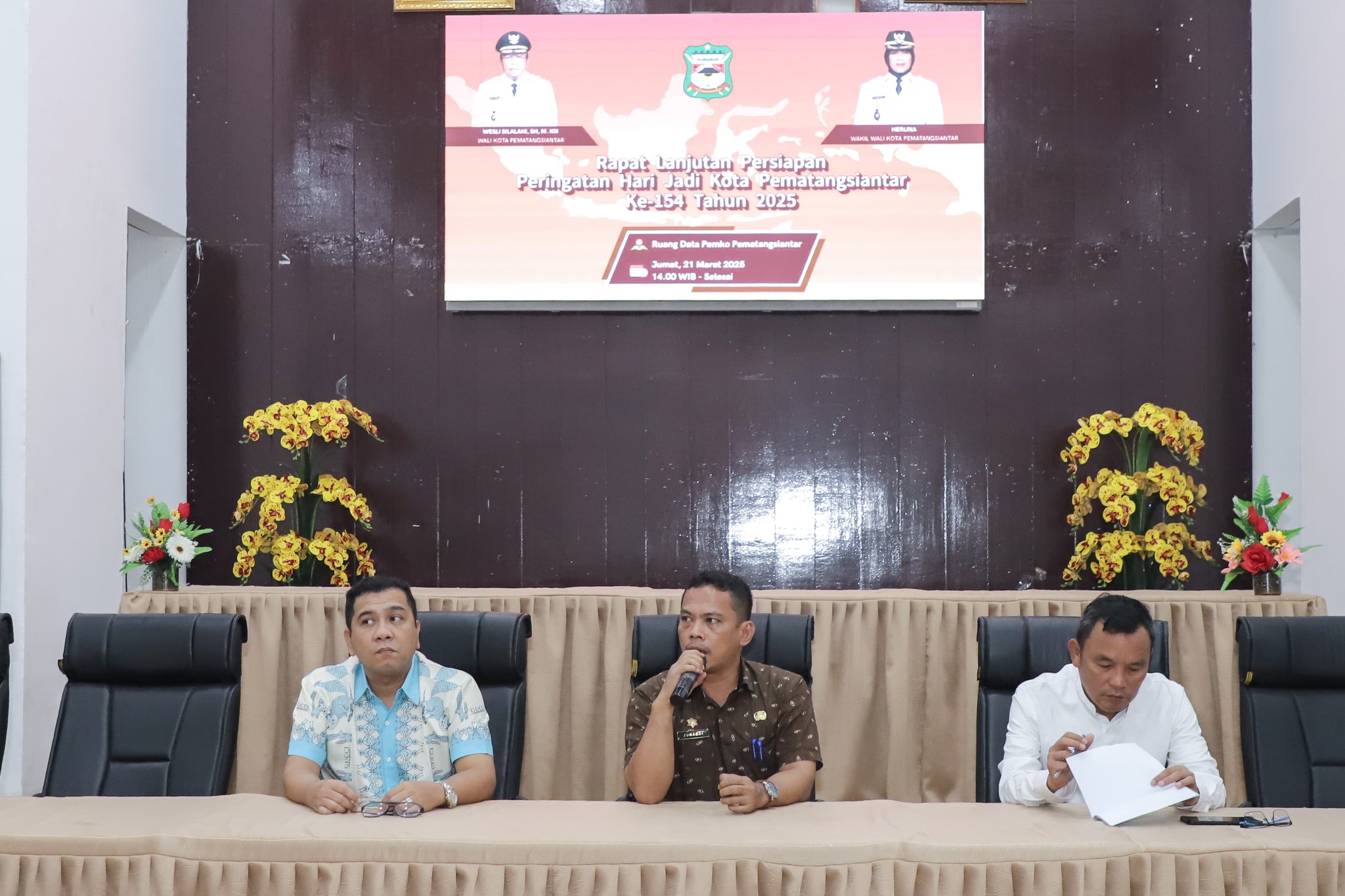 Akamsinews.com-Pematangsiantar. Pemerintah Kota (Pemko) Pematangsiantar menggelar Rapat Lanjutan Persiapan Peringatan Hari Jadi ke-154 Tahun Kota Pematangsiantar. Rapat yang dipimpin Sekretaris Daerah (Sekda) Junaedi Antonius Sitanggang SSTP MSi itu, dilaksanakan di Ruang Data Pemko Pematangsiantar, Jumat (21/03/2025) siang.